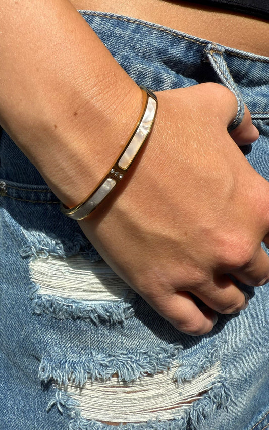 Margo is a 18k AAA gold plated bangle with a white band and small zircon gems