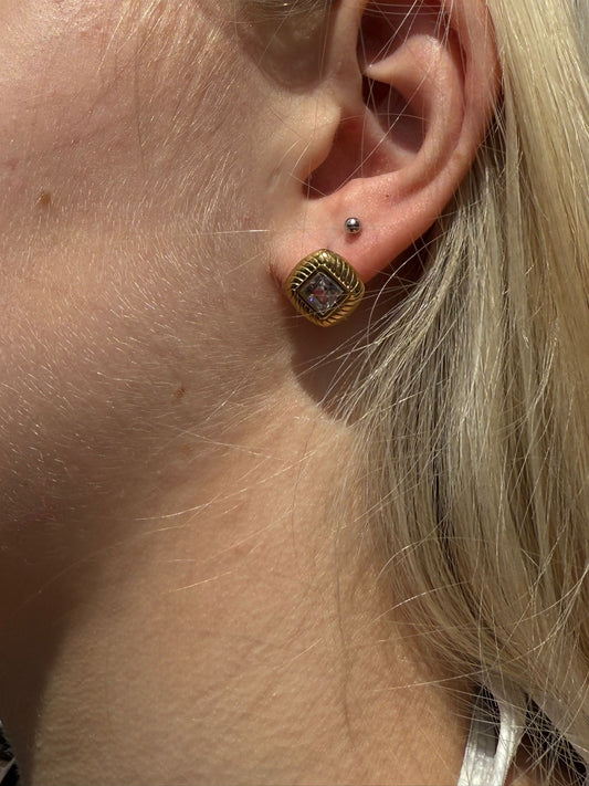 Blair 18k AAA gold plated square shaped earrings with a zirconia diamond