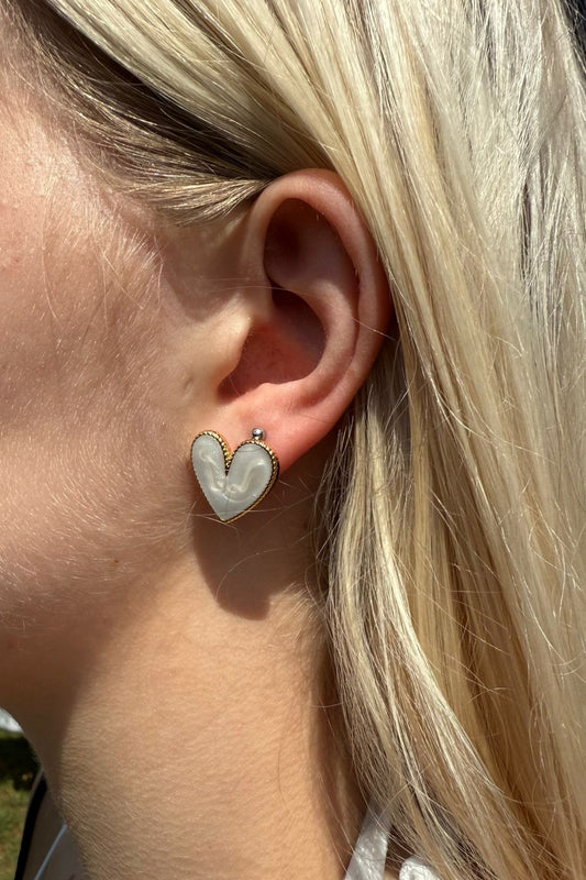 Ophelia 18k AAA gold plated heart shaped white stud earrings