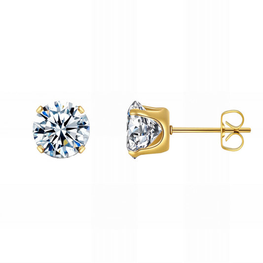 Bess stainless steel 8mm zircon stud earrings