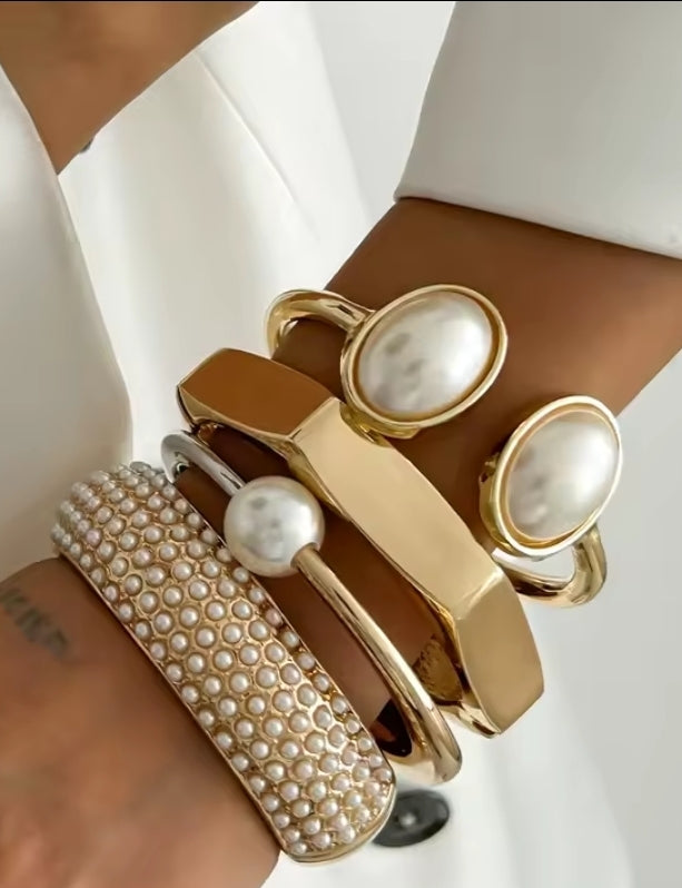 With six rows of luminous pearls delicately set on a gold-plated stainless steel band, Ingrid blends timeless sophistication with modern convenience. Its clever hinge design makes it effortless to put on and remove – no fuss, just pure style.